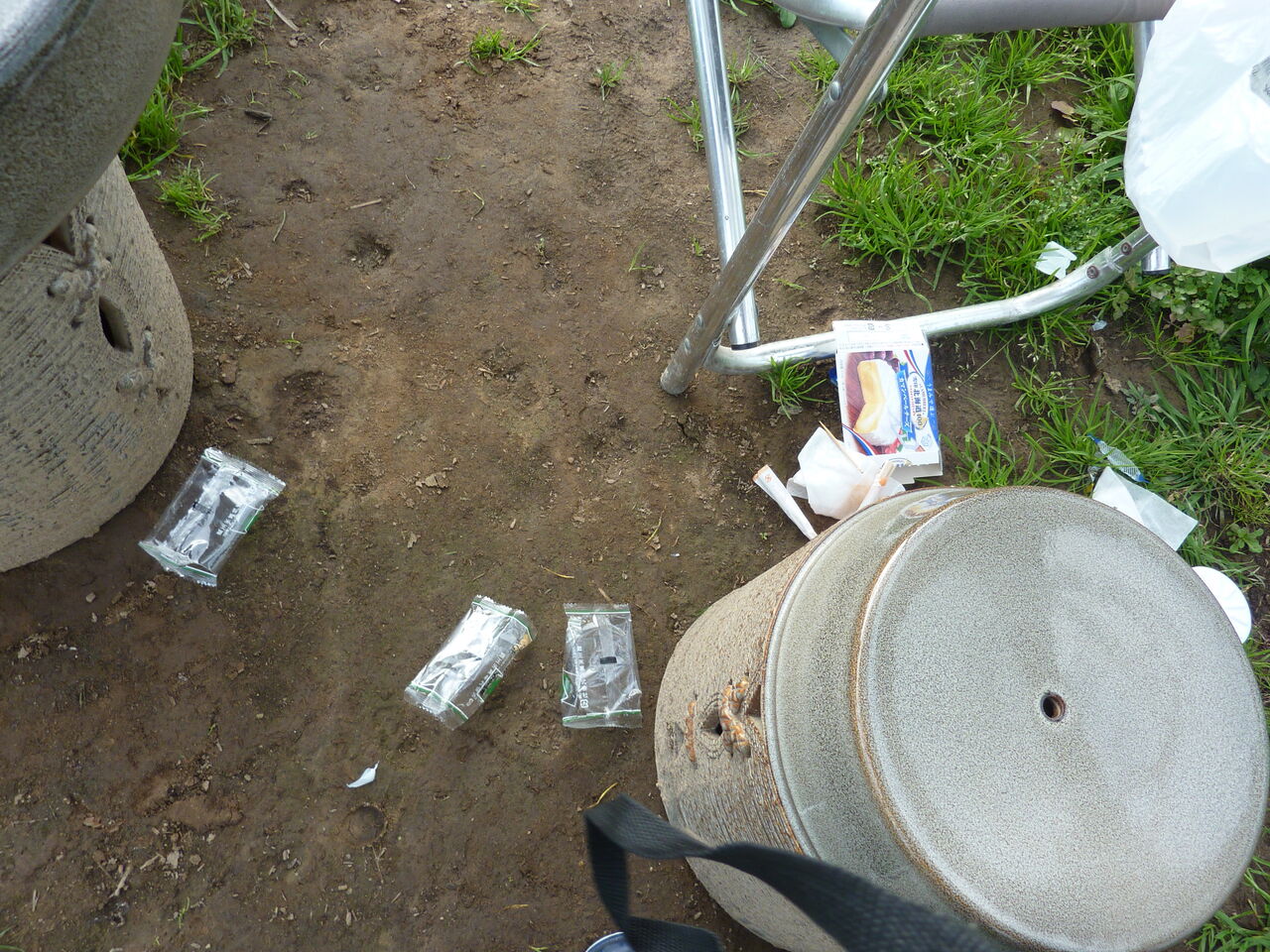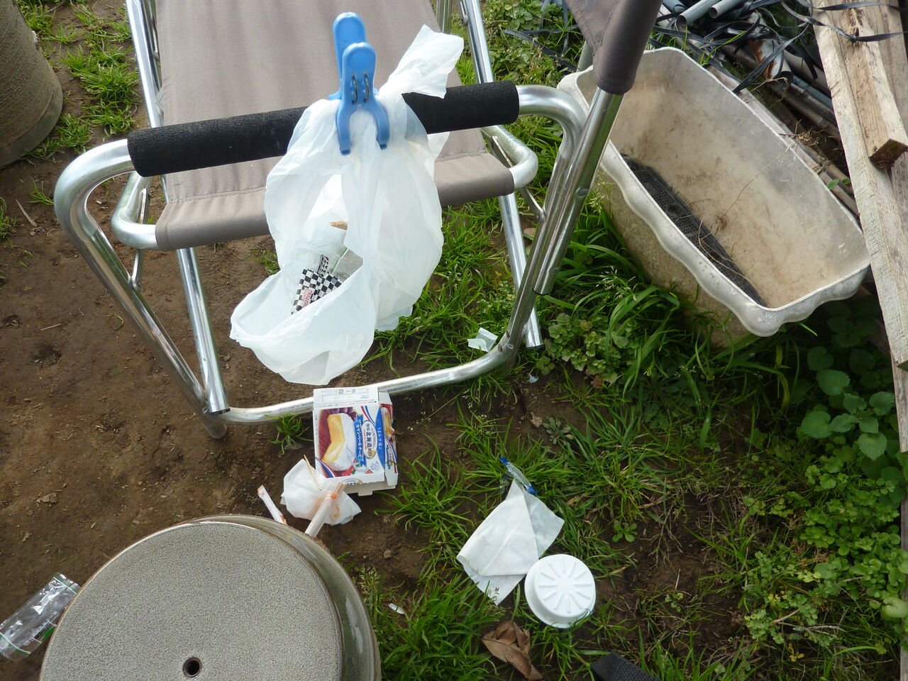昼食後に、出しっぱなしにしてしまった、おやつと、ごみ袋