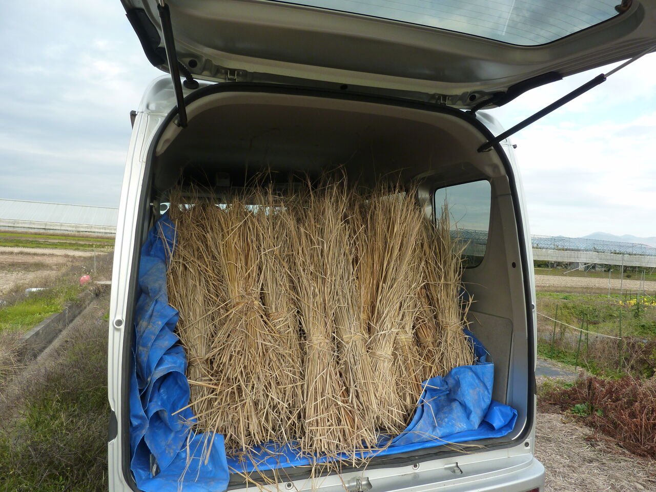 昼食後、実家の田んぼに稲わらをもらいに行きました。