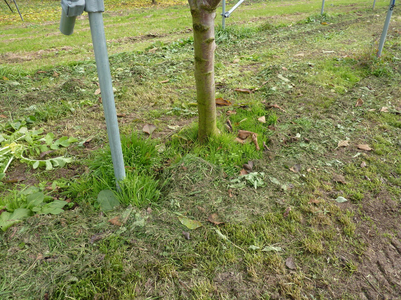 苗木の根元にも、かじられないように早く肥やし袋を巻かなくては。