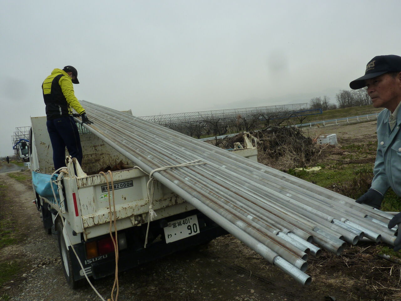 この日は、パイプを車につけては、移動、降ろす、を何往復したことか。