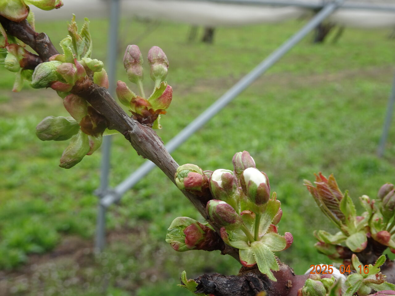 4月16日 ここ山形県寒河江市の桜が見頃の頃、研究所のさくらんぼ